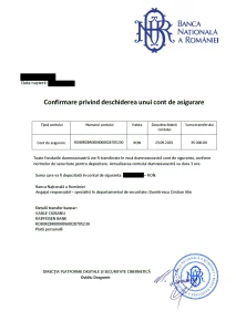 - după niște momente de așteptare veți fi informat că așa-zisul cont provizoriu a fost creat și veți primi un document cu datele aferente acestui cont.